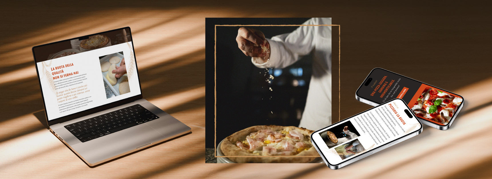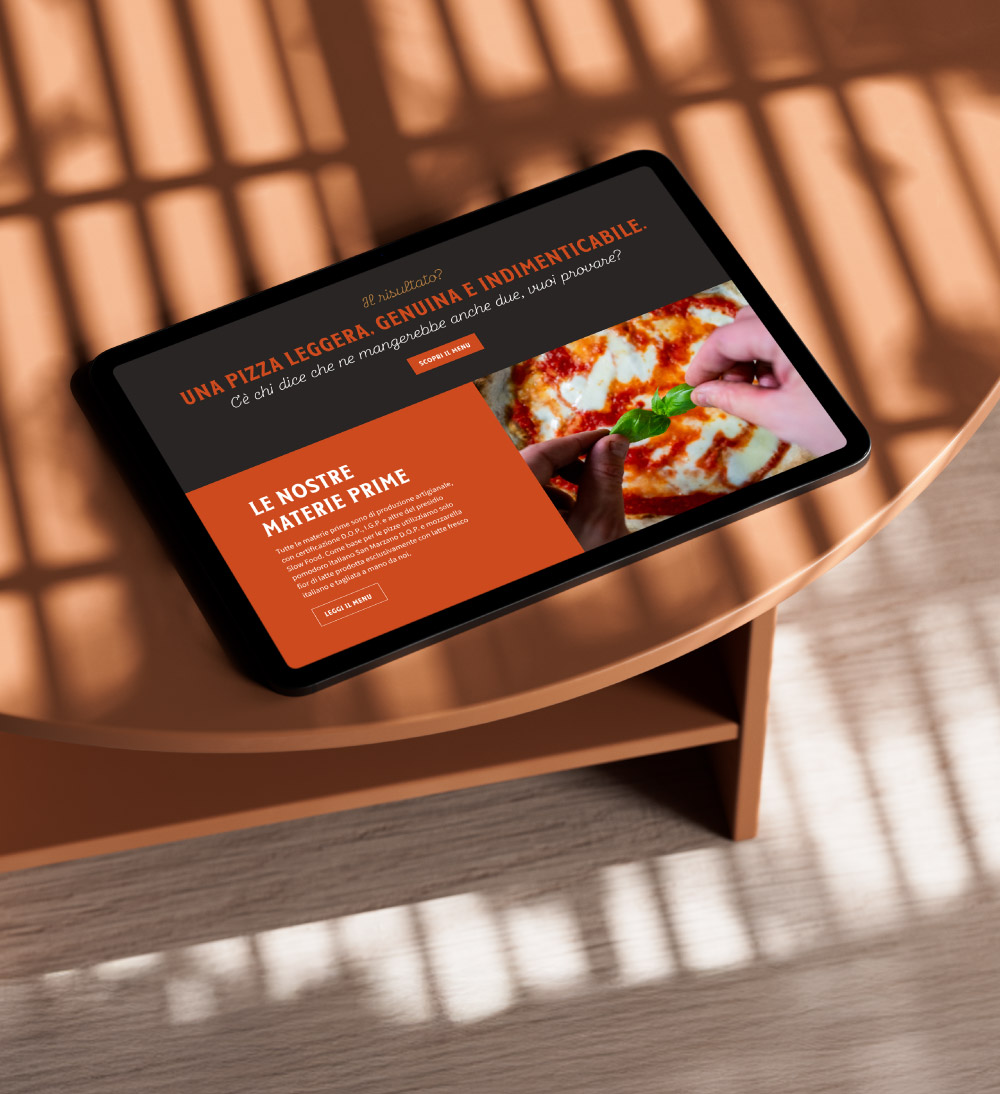 Per Pizzeria La Ruota abbiamo realizzato un progetto di comunicazione, mirato a valorizzare l’identità del brand. Lo shooting fotografico ha messo in risalto la qualità degli ingredienti e l’atmosfera autentica del locale, mentre il sito web è stato progettato per offrire un’esperienza intuitiva e coinvolgente. Il menu è stato sviluppato con un design chiaro e accattivante, per facilitare la scelta dei clienti. La gestione dei social media ha permesso di creare una community attiva e raccontare il brand con contenuti coinvolgenti e strategici. Un lavoro a 360° per esaltare l’anima di La Ruota sui principali touchpoint di comunicazione.